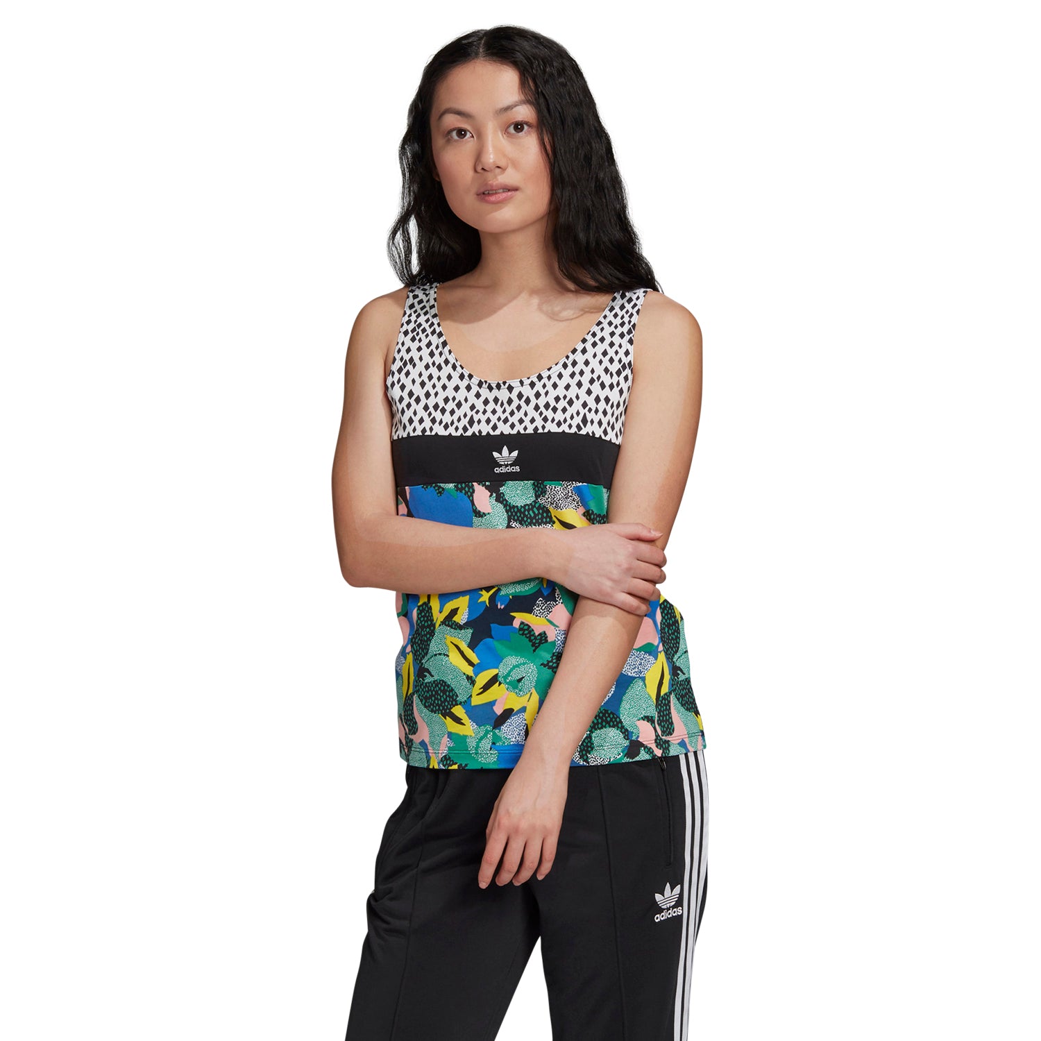 With this collaboration between adidas and HER Studio London, you will be a canvas in which you will show off art. Dared. Funny. Vibrant. This urban skeleton exudes a bohemian style with designer patterns. The mix of diamond-shaped dots, a floral print and the Trefoil logo results in a work of art.