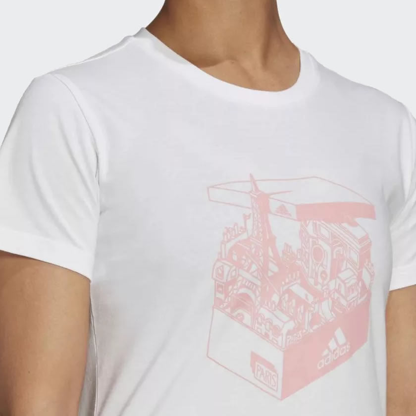 There's nothing more exciting than opening a shoebox to a new set of adidas kicks. Nothing that is, except jet-setting away and breaking them in on the busy streets of Paris. Slip on this t-shirt and celebrate the sights, the sounds and the history of France's largest city. Soft cotton fabric keeps you comfy and ready to travel.